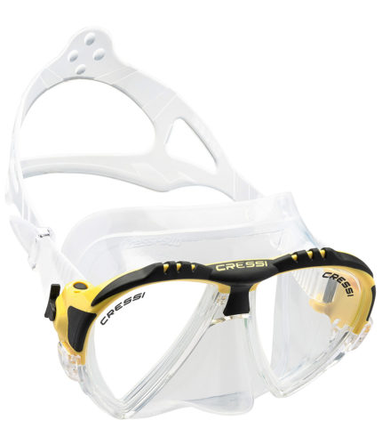 Following the revolutionary principles introduced by the Big Eyes, the Matrix establishes new records. The patented concept of raked lenses and their special “inverted drop” is developed further here. The lenses are placed as closely as possible to the eyes, with the further increase in the field of vision taken to the maximum levels possible. The newly designed headband is very narrow and is practically invisible when the mask is being worn. In the upper part of the headband there are inserts in a rubber material that not only has a strong grip but is also aesthetically attractive. The soft silicone skirt has a new profile and a wide sealing ring for excellent grip and unprecedented comfort. The internal volume of the mask is exceptionally low, lower than that of many free diving models and the weight is decidedly low. Two pressure buckles, integrated into the headband, allow for quick and accurate adjustment of the strap. The latter has a new design with a very wide support area at the back of the neck for magnificent comfort. An excellent mask for both snorkeling and scuba diving.