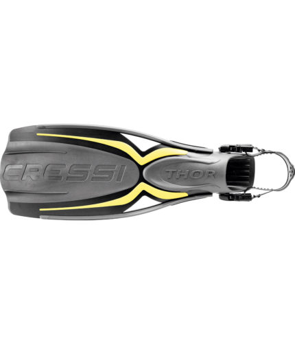 Brand new design for this extremely effective and yet very easy to use fin. The special arched profile of the fins combined with the two central ribs promote a significant flow convection effect, known as “spoon effect”, which stabilises and boosts propulsion. Two lateral holes discharge the negative forces typically associated with this area and at the same time make for enhanced stability. The blades are moulded from two different materials for improved reactivity. These fins are perfect for scuba diving, whether you are an experienced diver or a novice.